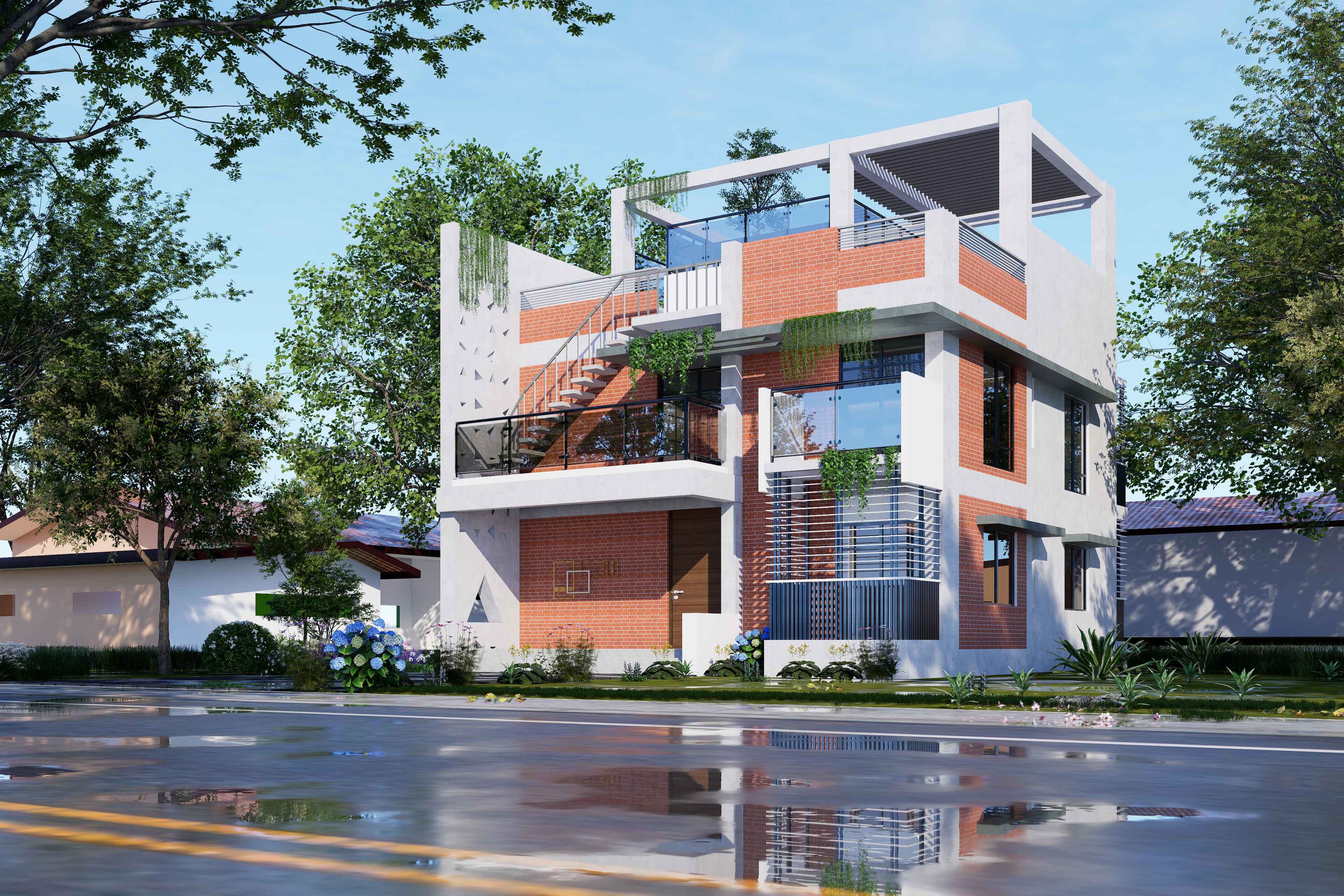 A modern duplex residence in Rajshahi designed to reflect both elegance and functionality. The architectural language embraces clean lines, bold forms, and a balanced use of textures to create a striking presence along the urban landscape.